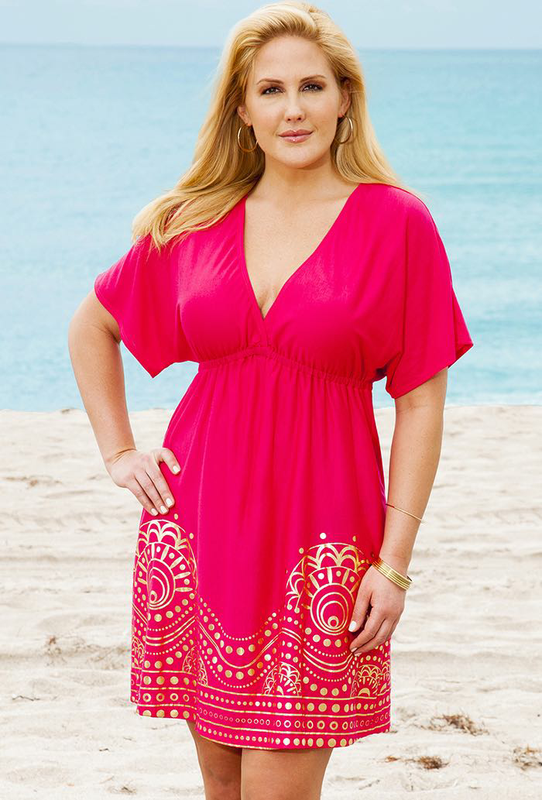 plus size beach coverups and dresses plus size beach tunics plus size beach kimono cover plus size beach kimono dress plus size kimono style dress One of the most frustrating shopping experiences a full-figured woman can have is shopping for swimwear.
